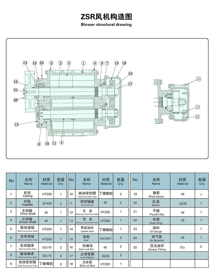 4.每個葉輪通過同步齒輪始終保持在正確的相位,并且沒有相互接觸的現象,因此可以實現高速運轉。