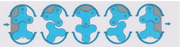 羅茨鼓風(fēng)機(jī)的工作原理: