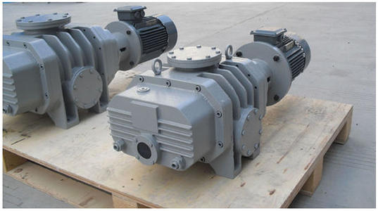 羅茨真空泵是一種無內壓縮的真空泵,通常壓縮比很低,故高、中真空泵需要前級泵。靠泵腔內一對葉形轉子同步、反向旋轉的推壓作用來移動氣體而實現抽氣的真空泵。