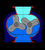 羅茨鼓風機是一種容積式鼓風機,通過一對轉子的嚙合(轉子之間有間隙,又不相互接觸)使進氣口隔開,轉子由一對同步齒輪傳動,做反方向運動,將吸入的氣體無內壓縮的從吸氣口推至排氣口。氣體到達排氣口的瞬間,因排氣側高壓氣體的回流而被加壓,從而完成氣體輸送。